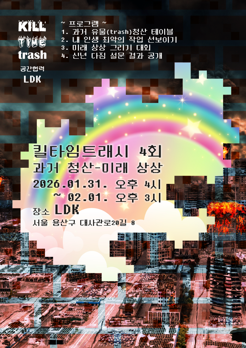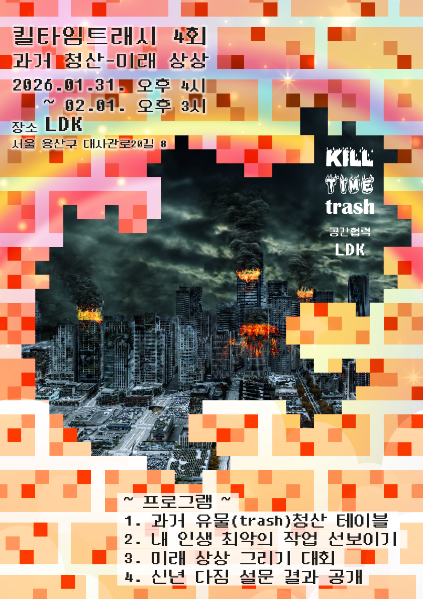 새해가 밝았지만 더욱 나쁜 소식 뿐이다. 바로 이런 상황이기에 오히려 올해 킬타임트래시는 과거 청산과 미래 상상을 주제로 삼는다. 1박 2일 함께 모여 지난 과거를 돌아보며 정리할 건 정리하고 앞으로의 미래를 그려 보기로 한다.